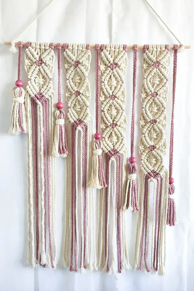 מקרמה מעוינים מדורג הוא יצירת אמנות טקסטילית המשלבת טכניקות קשירה מסורתיות ליצירה מודרנית ועיצובית. סוג זה של מקרמה מושלם למי שמחפש להוסיף טאץ' בוהמי וחמים לכל חלל. המעוינים המדורגים יוצרים עניין ויזואלי עשיר ומעניין. ניתן לשלב צבעים שונים ליצירת מראה עשיר יותר או להשתמש בגוון אחד למראה מינימליסטי ונקי. מקרמה מתאים לתליה על קירות בסלון, בחדרי שינה או אפילו במסדרונות, והוא מוסיף חום וטקסטורה למרחב. מקרמה הוא בחירה מעולה למי שרוצה לשלב יסודות טבעיים ועבודת יד בעיצוב הבית.