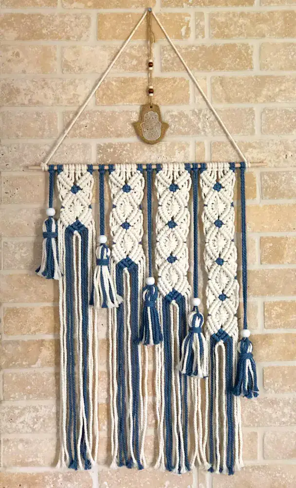 מקרמה מעוינים מדורג הוא יצירת אמנות טקסטילית המשלבת טכניקות קשירה מסורתיות ליצירה מודרנית ועיצובית. סוג זה של מקרמה מושלם למי שמחפש להוסיף טאץ' בוהמי וחמים לכל חלל. המעוינים המדורגים יוצרים עניין ויזואלי עשיר ומעניין. ניתן לשלב צבעים שונים ליצירת מראה עשיר יותר או להשתמש בגוון אחד למראה מינימליסטי ונקי. מקרמה מתאים לתליה על קירות בסלון, בחדרי שינה או אפילו במסדרונות, והוא מוסיף חום וטקסטורה למרחב. מקרמה הוא בחירה מעולה למי שרוצה לשלב יסודות טבעיים ועבודת יד בעיצוב הבית.
