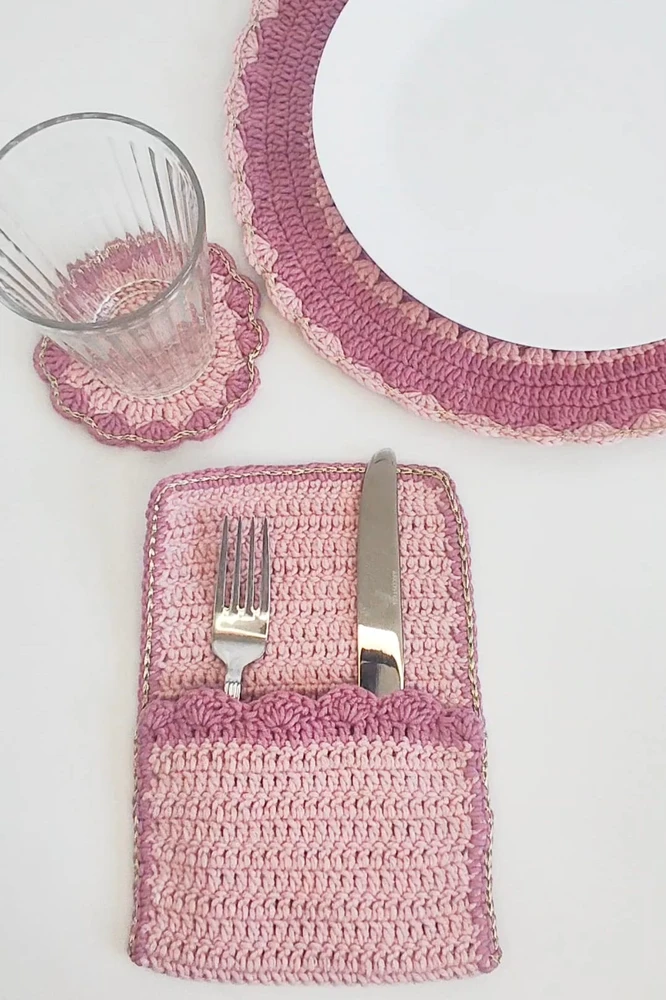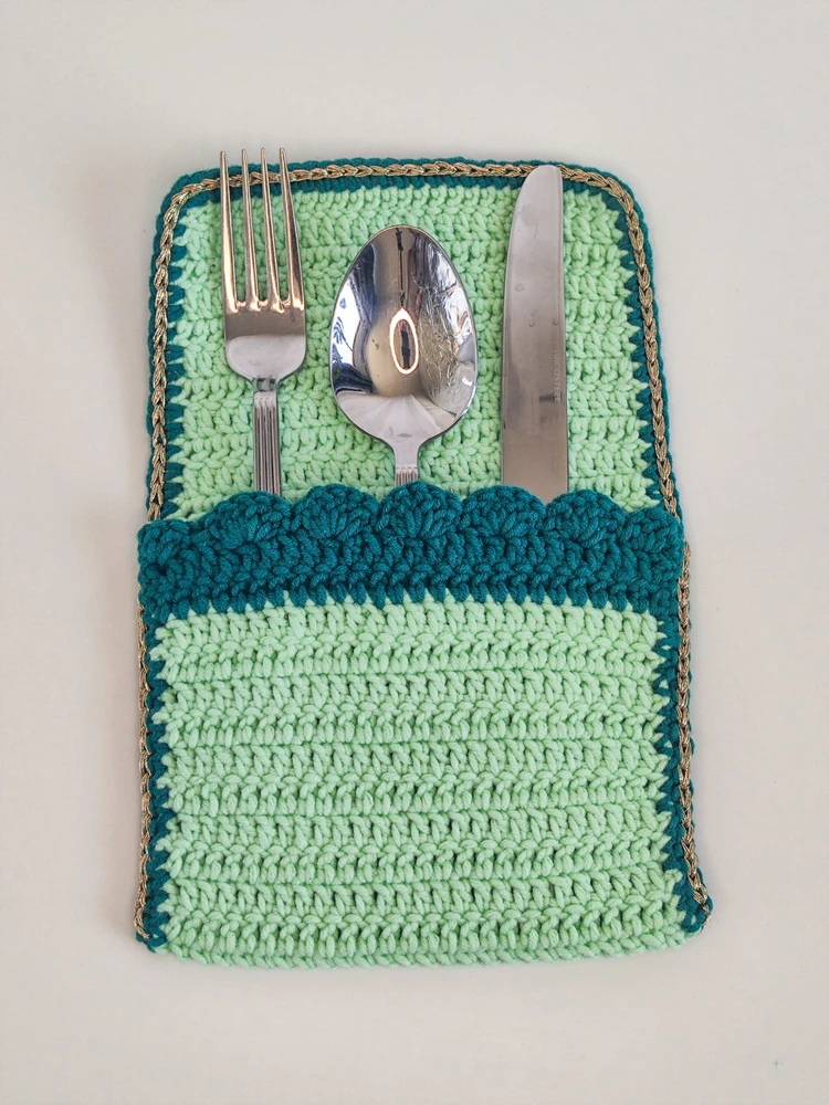 כיס הגשה לסכו"ם סרוג בעבודת יד.